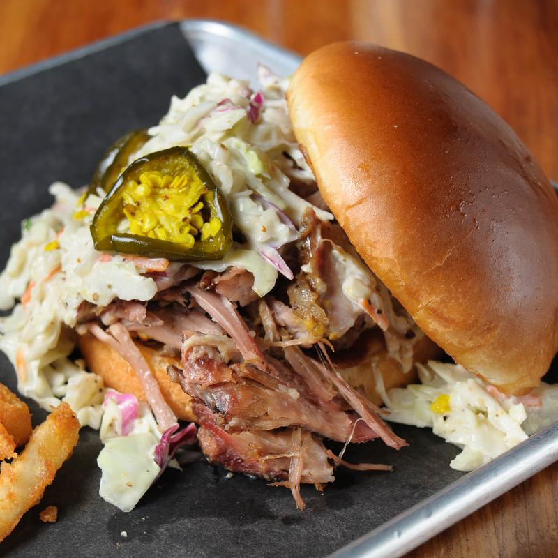 Pulled pork, slaw & candied jalapeños on a toasted brioche bun.